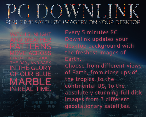Every 5 minutes, PC Downlink updates your desktop background with the freshest images of Earth.
